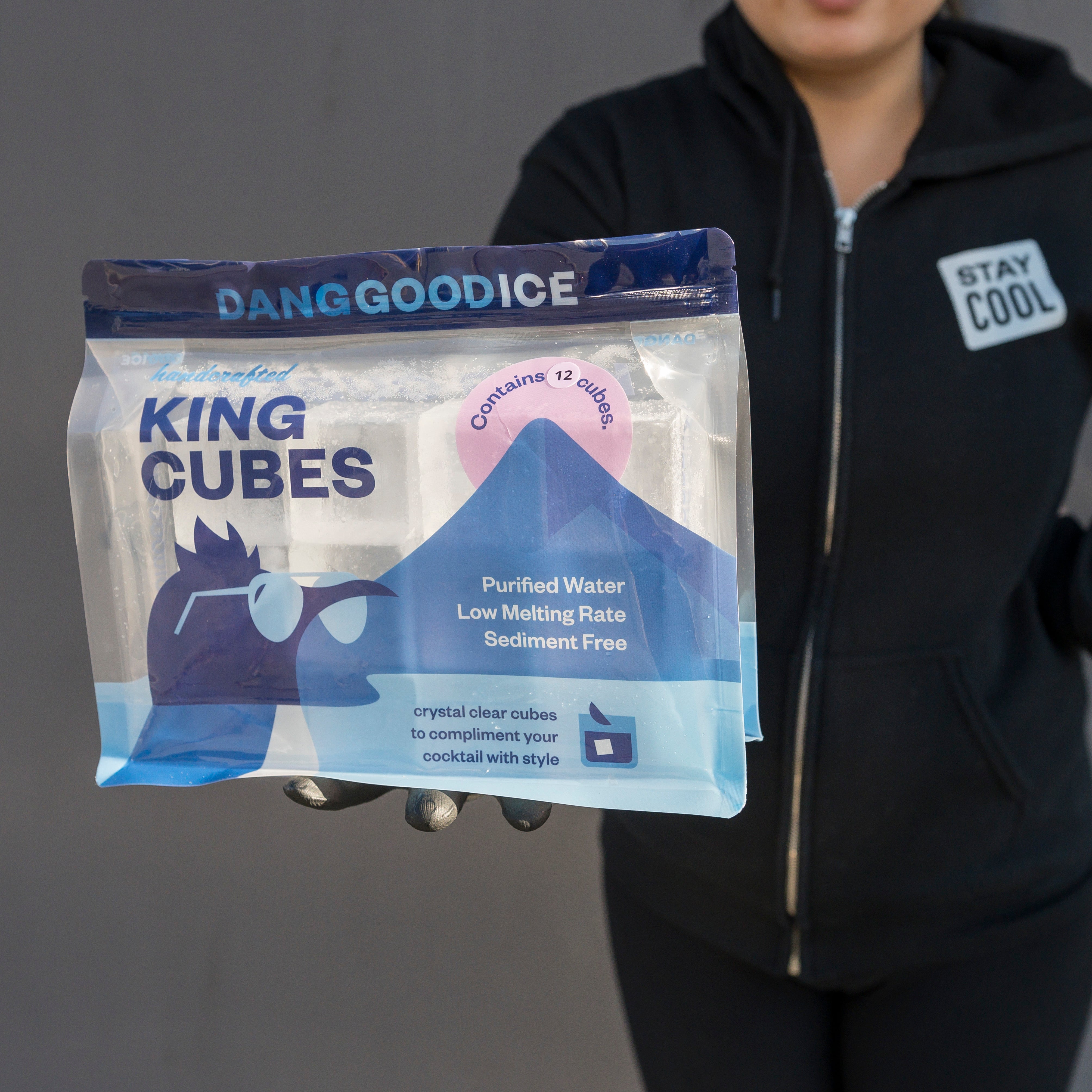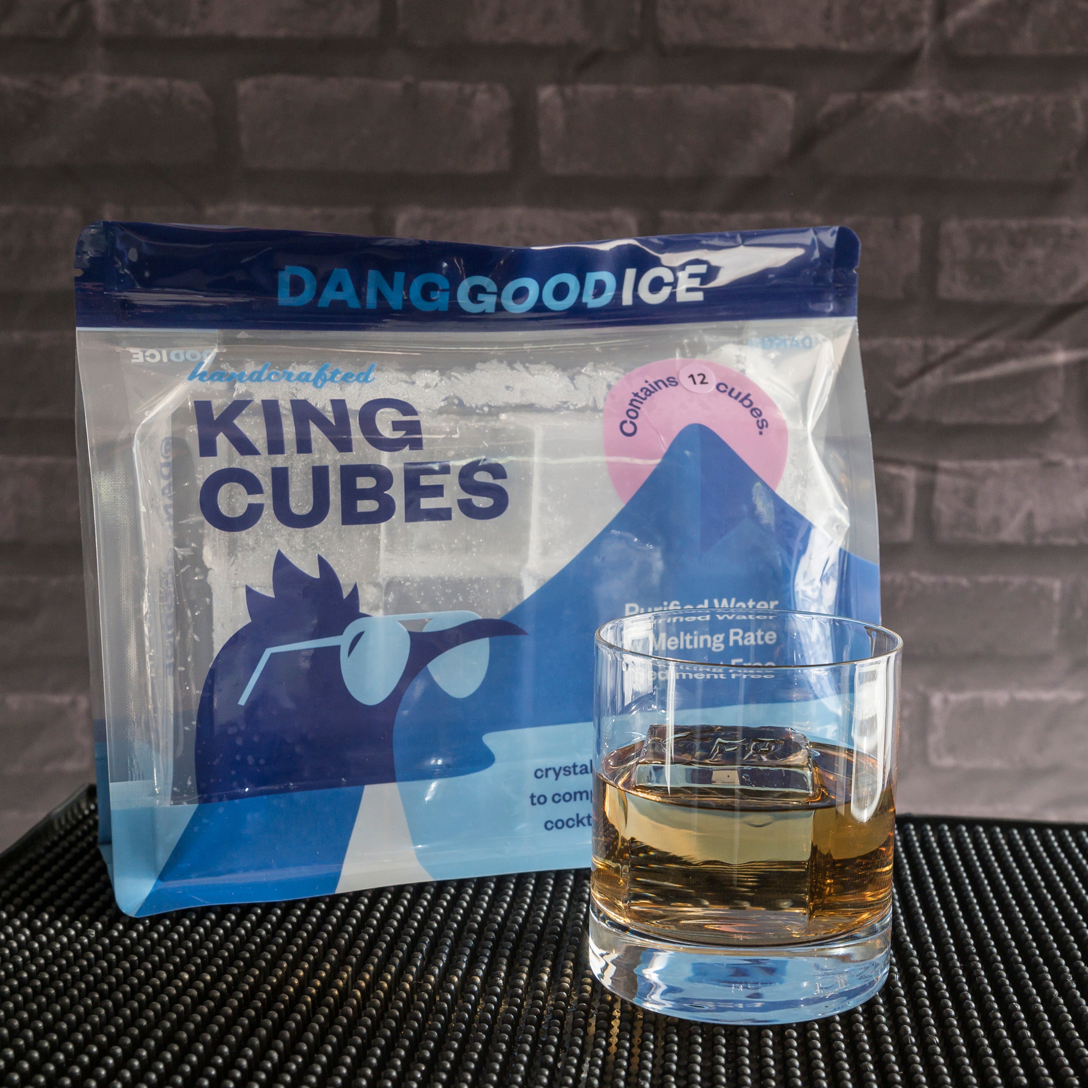 A: Our King Cubes are perfectly sized 2" slow-melting ice spheres made from purified water, offering crystal-clear purity without altering your drink's taste. |