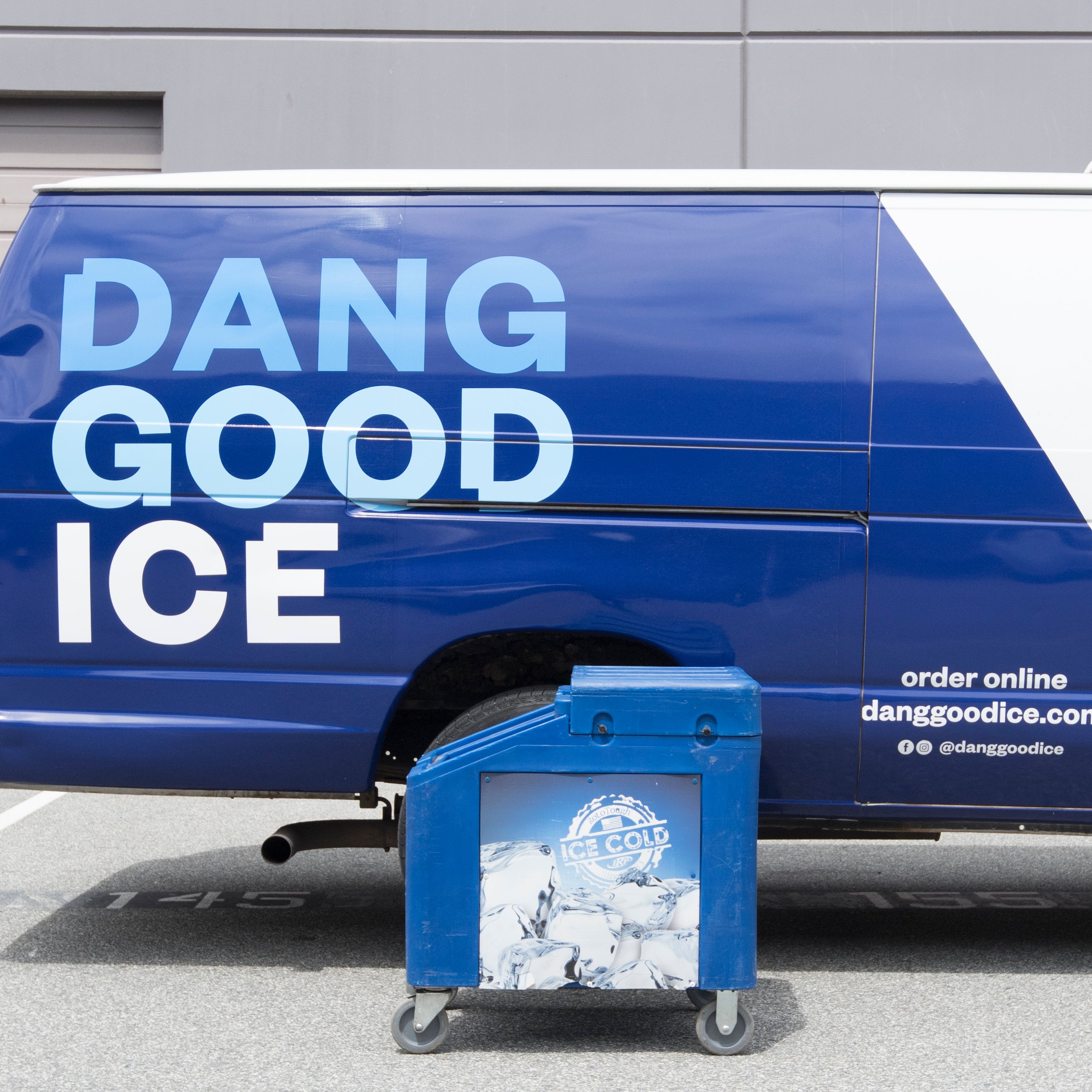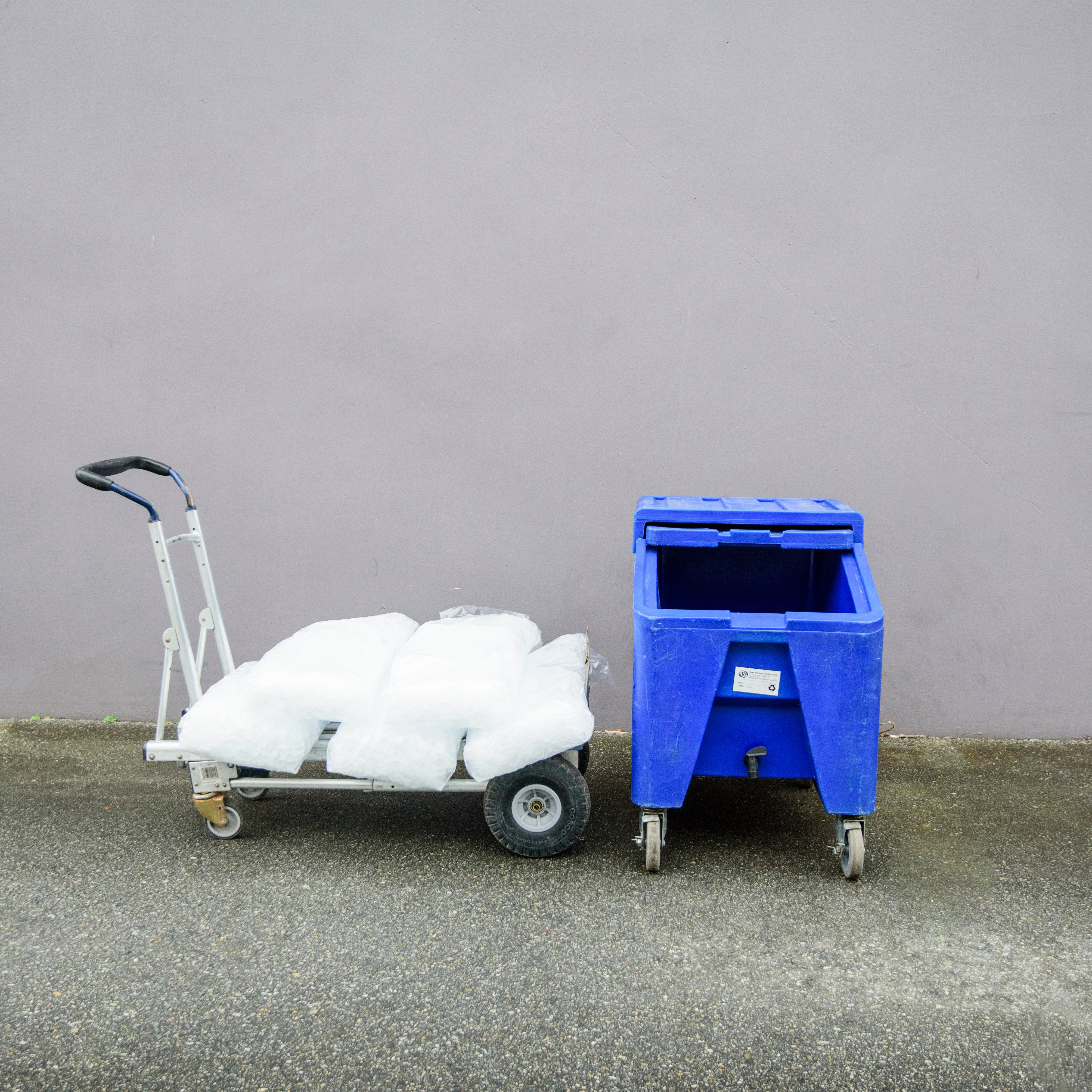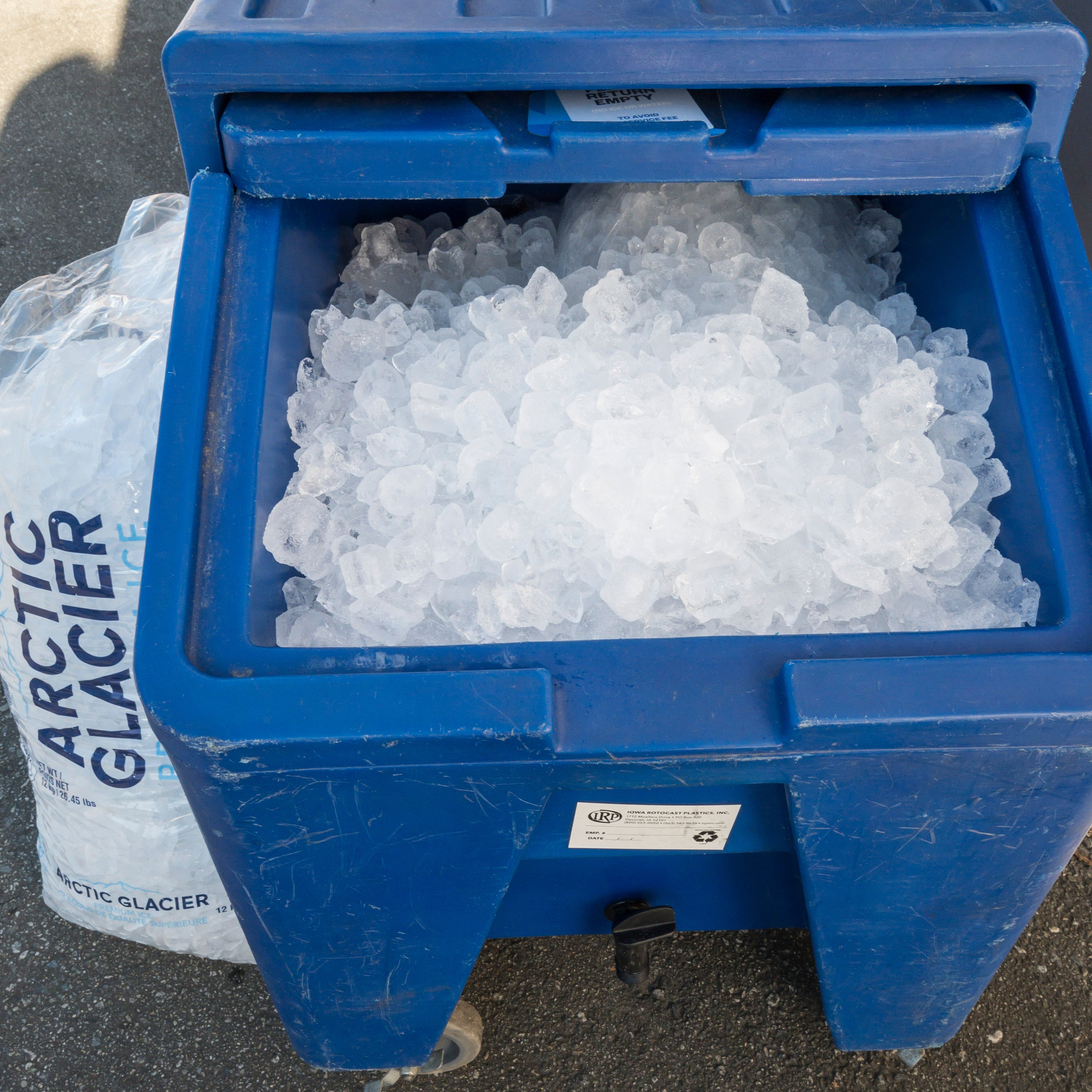 Rent our small mobile ice caddy for easy storage and transport of 100-140lbs of ice.